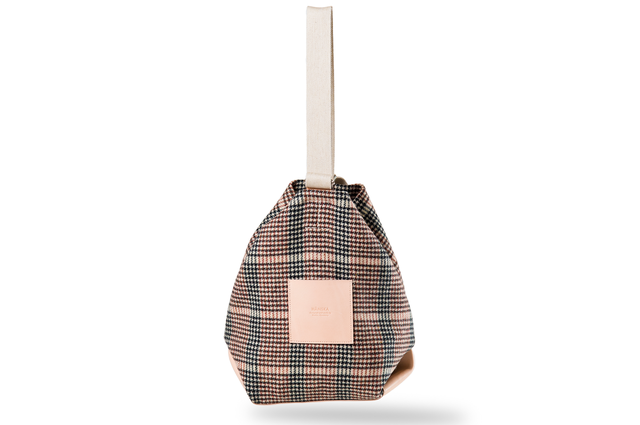 Gefertigt aus dichtgewebter, wasserabweisender Wolle mit Details aus pflanzlich gegerbtem Leder, Gurtband aus Belgien, Karabinerband und drei Innenfächer runden das Design ab.