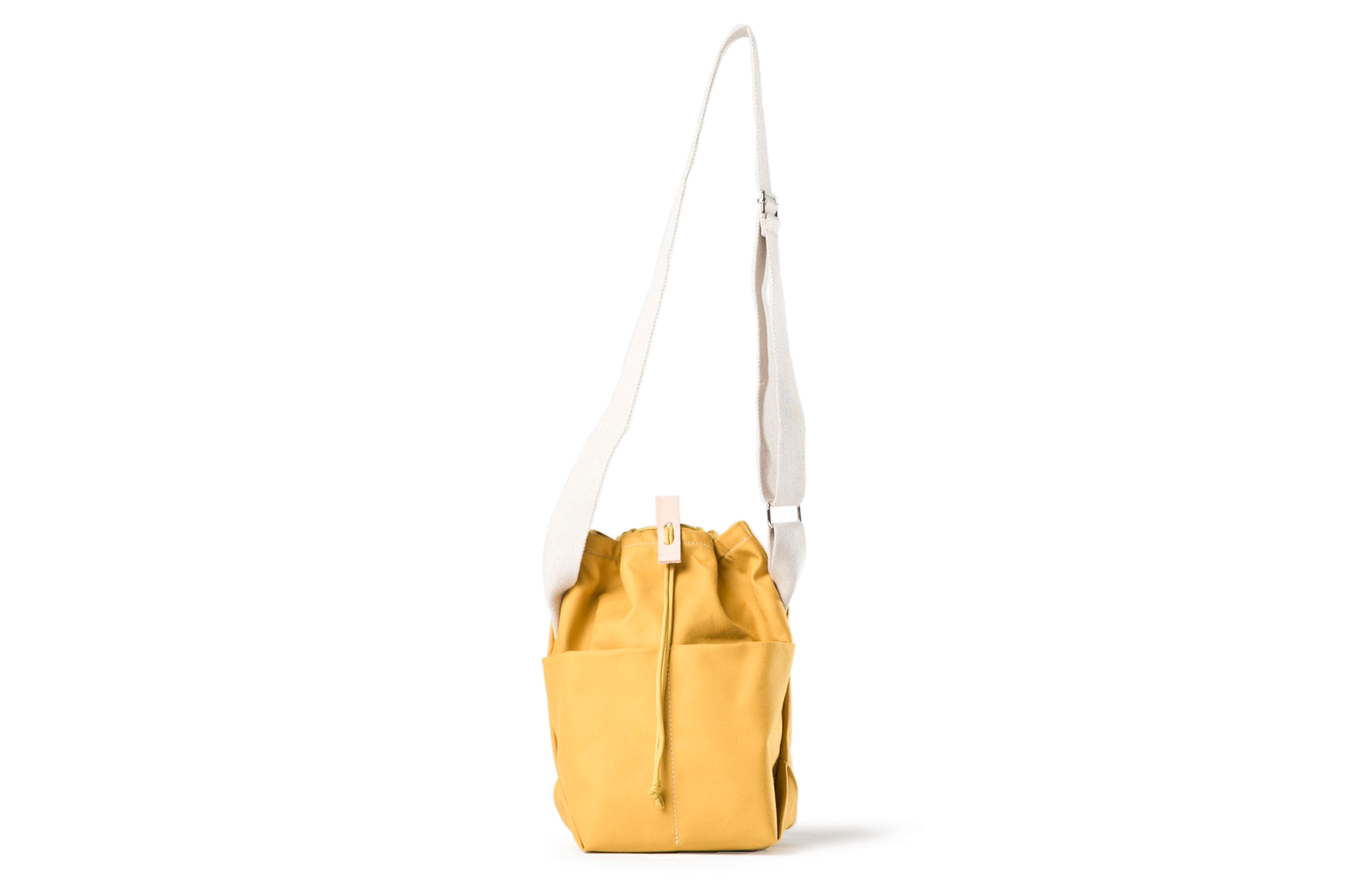 Diese kleine, leichte Beutel-Tasche wird mit einem Kordelzug verschlossen und kann entweder über der Schulter oder quer getragen werden. Außen befinden sich zwei größere Taschen, innen ein kleines Fach für persönliche Gegenstände.